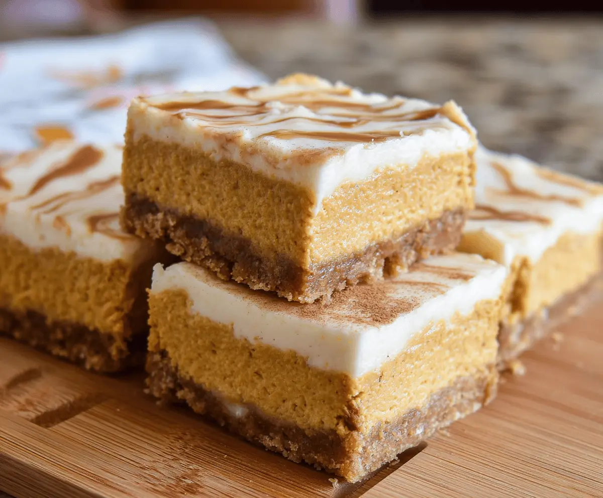 This scrumptious recipe gives you creamy, layered bars with a buttery crust, bursting with warm pumpkin spices and a smooth cheesecake swirl. They’re perfect for any fall gathering or cozy night in!