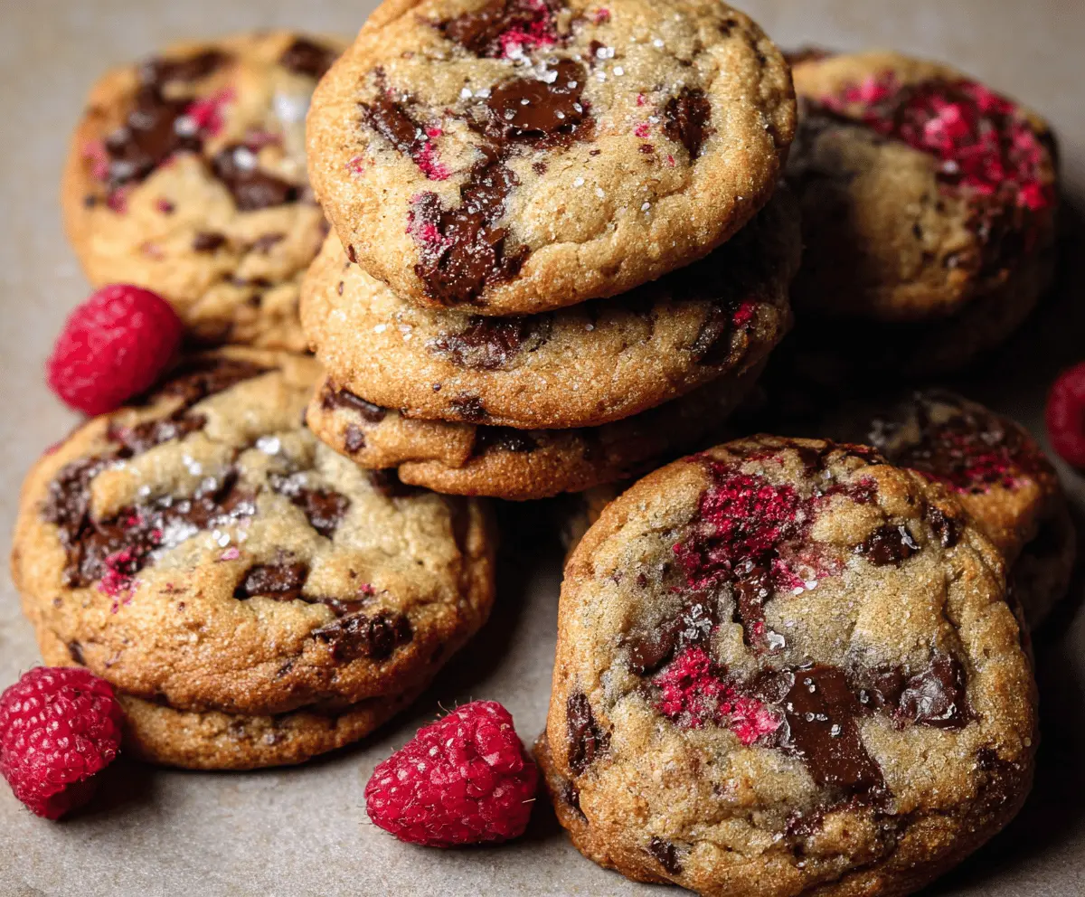 These raspberry and chocolate chip cookies are a perfect sweet treat! The tartness of the raspberries mixed with gooey chocolate chips makes every bite delightful.