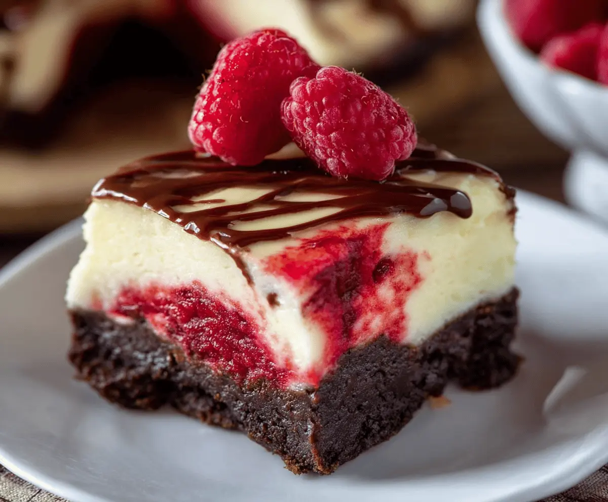 This dessert combines rich chocolate brownie, creamy cheesecake, and tart raspberry, making it an absolute crowd-pleaser!