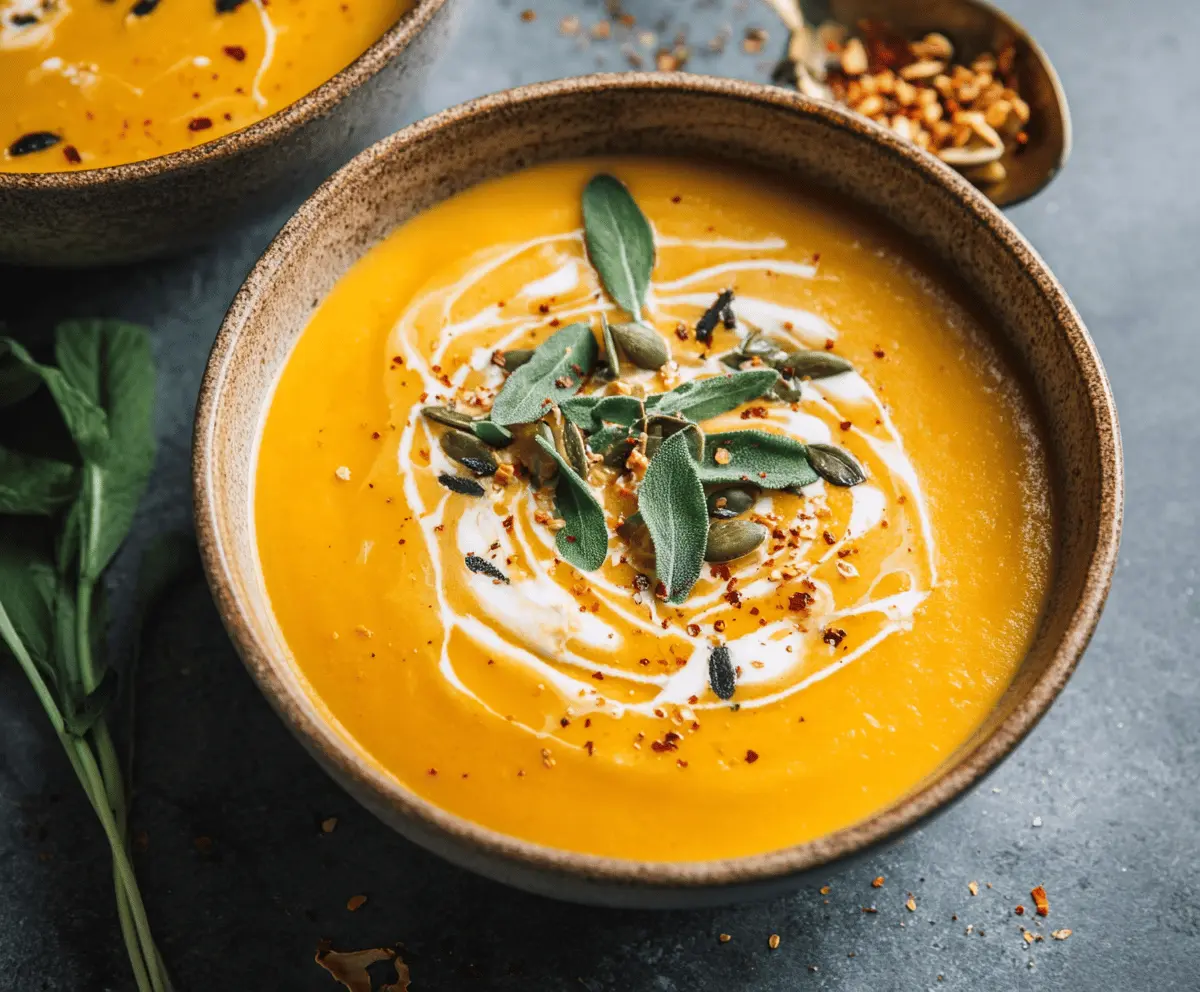 Enjoy your hearty and velvety roasted butternut squash soup packed with flavor!
