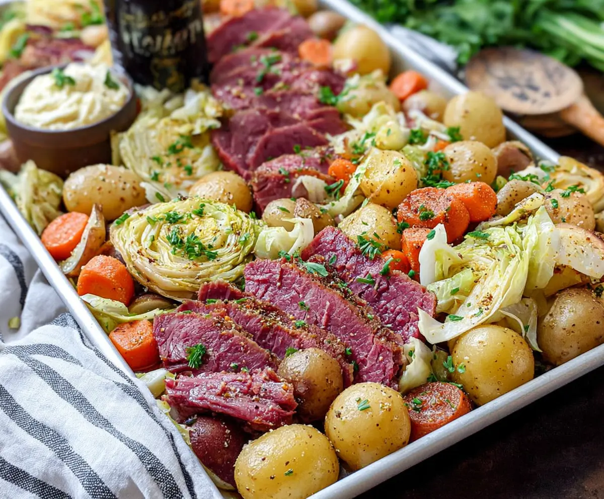 This dish brings together tender corned beef and crisp cabbage all cooked on one big sheet pan. It’s easy to make and perfect for busy nights!