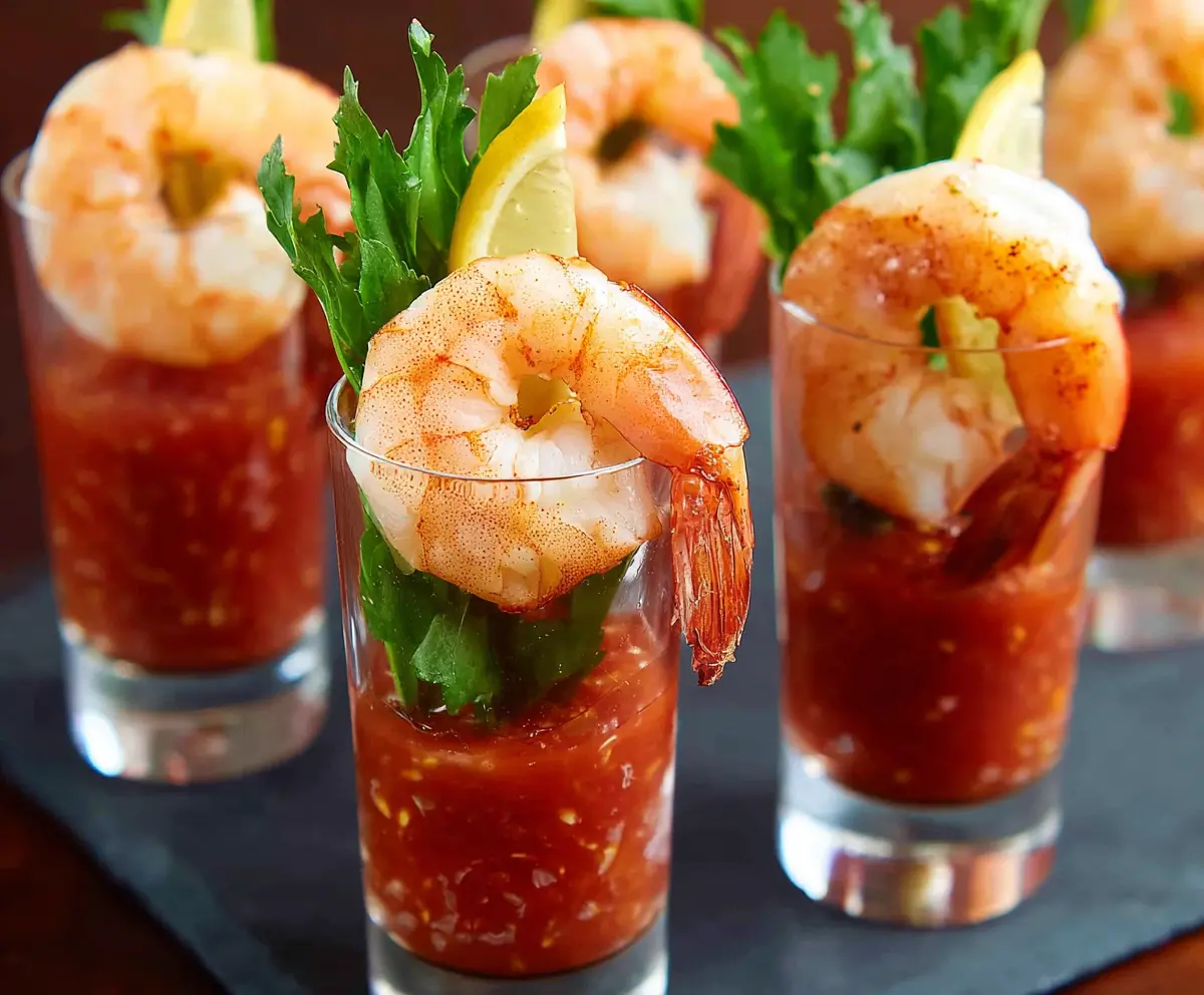 This elegant presentation of Shrimp Cocktail Shooters is not only visually appealing but also makes for a refreshing and easy-to-eat appetizer perfect for any party. Enjoy!