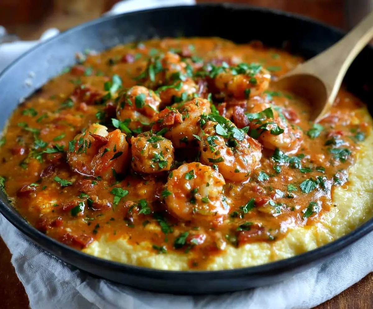 This recipe yields a creamy, comforting dish featuring tender shrimp in a flavorful, slightly spicy sauce over rich cheesy grits. Enjoy every bite! 😊