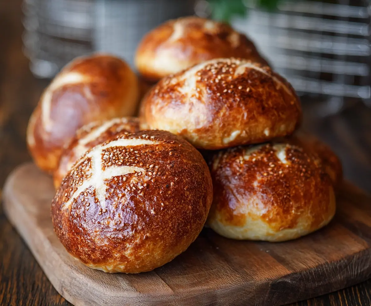 Enjoy the chewy, golden goodness of homemade soft pretzel buns!