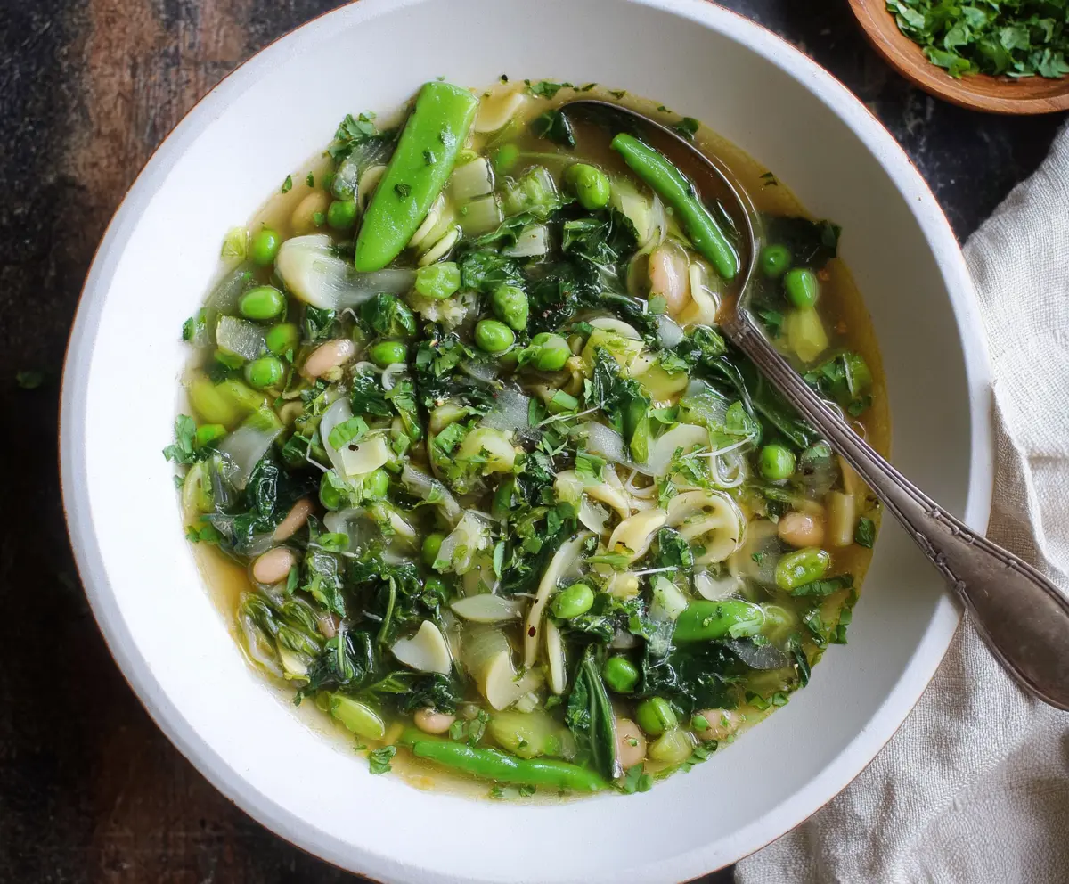 This Spring Green Minestrone Soup is a fresh and colorful mix of bright veggies like peas, asparagus, and spinach, all cooked in a tasty broth. It’s like a hug in a bowl for spring!