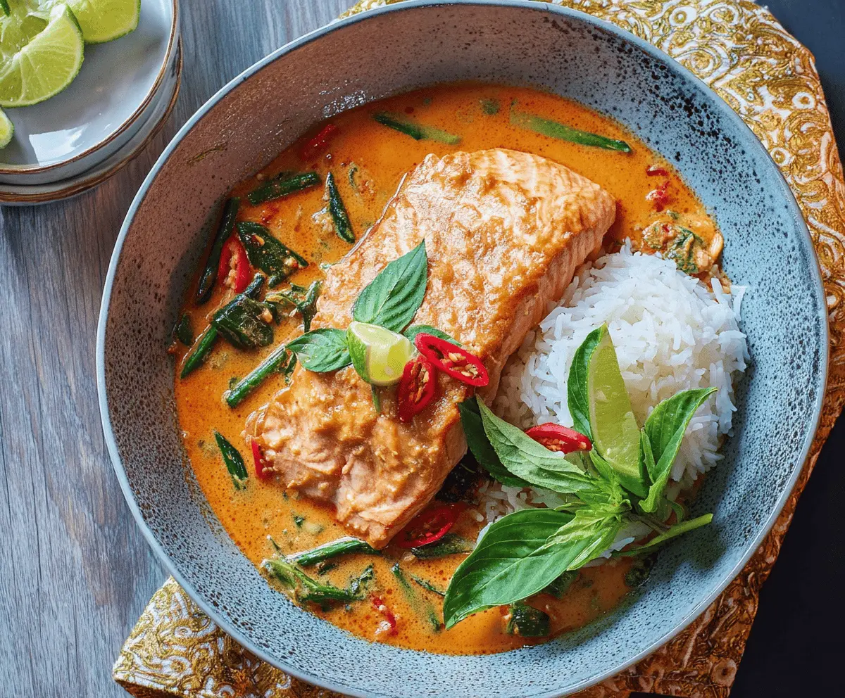 Enjoy the rich and vibrant flavors of this authentic Thai-inspired salmon dish—it’s sure to be a hit!