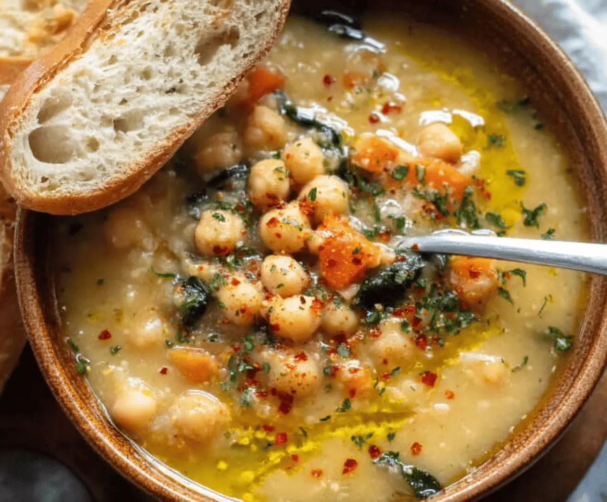 This Vegan Garlic Chickpea Soup is warm and comforting, packed with protein from chickpeas and a delicious garlic flavor. It’s perfect for chilly days!
